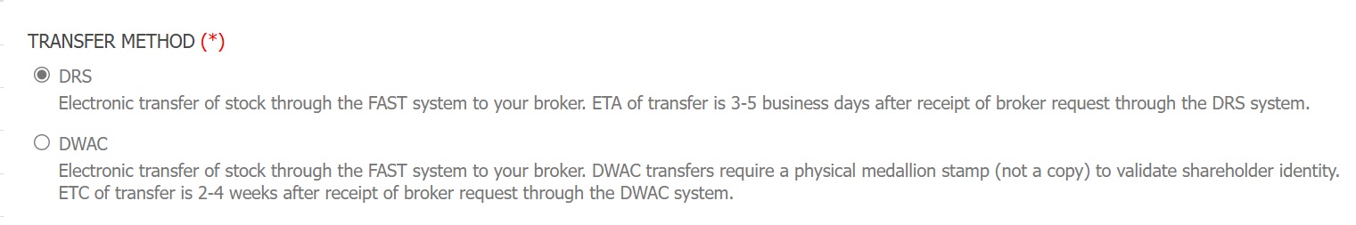 DWAC - Slower electronic transfer (usually takes 2–4 weeks); requires extra verification steps.